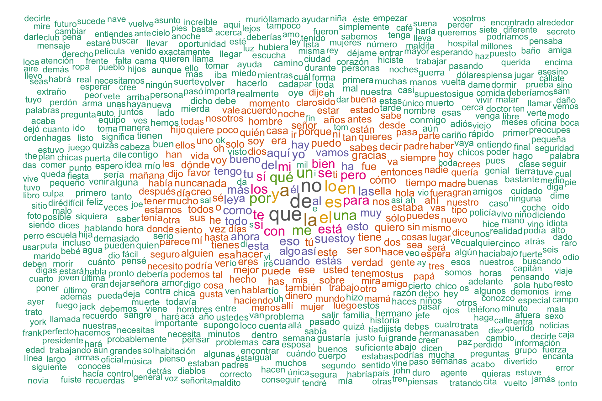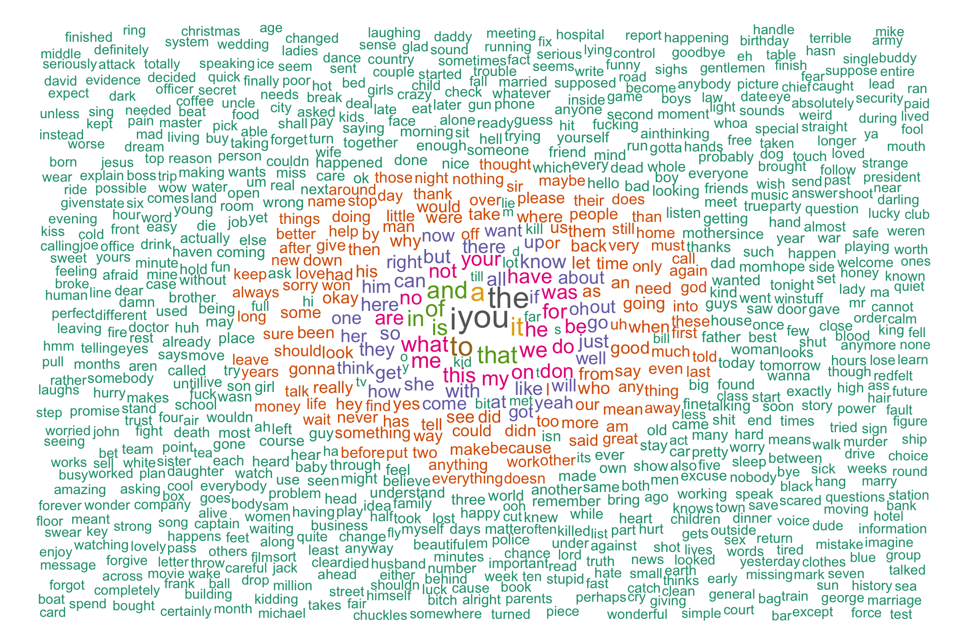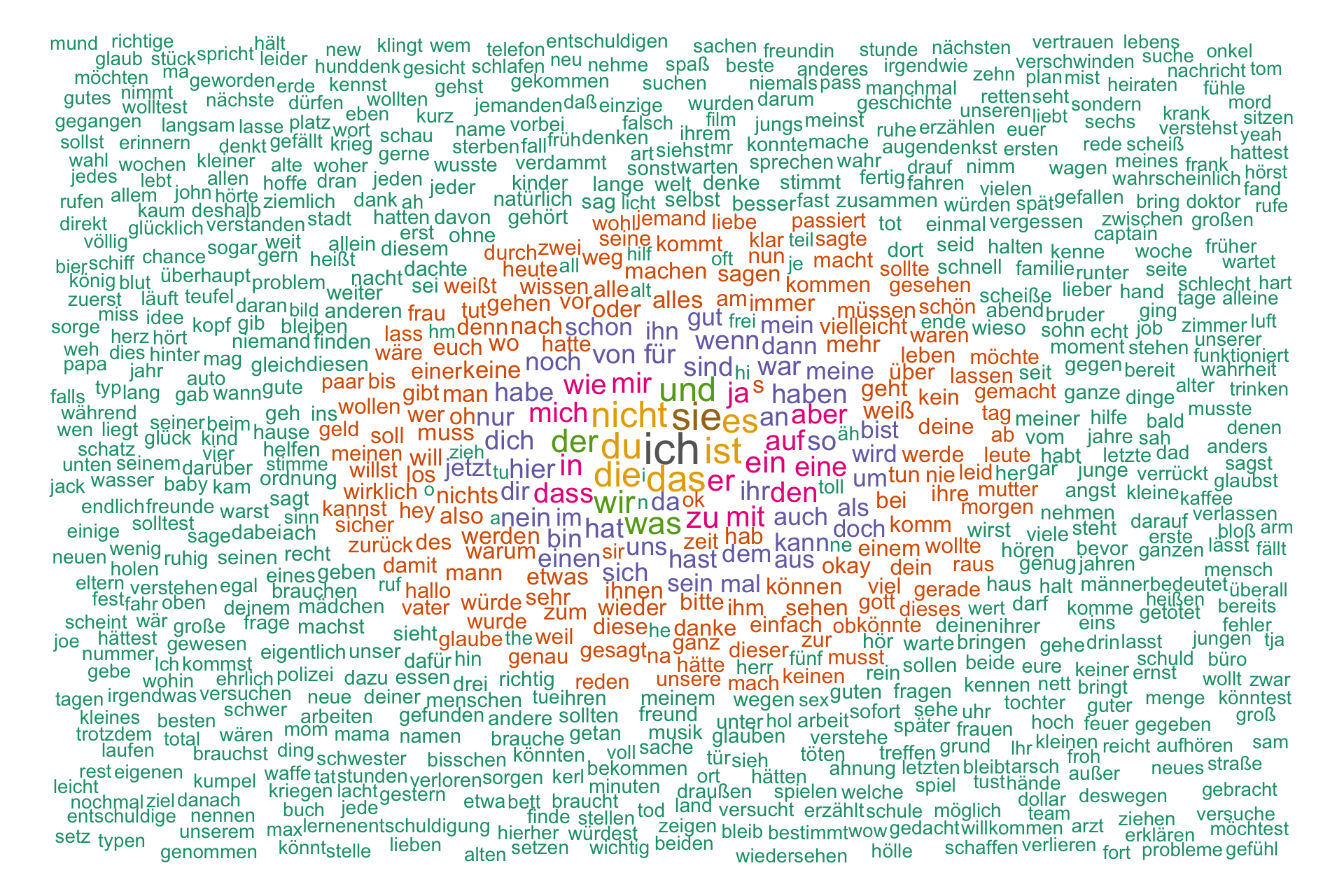And what text analysis would be complete without a word cloud, here of the top 1,000 most frequent words.